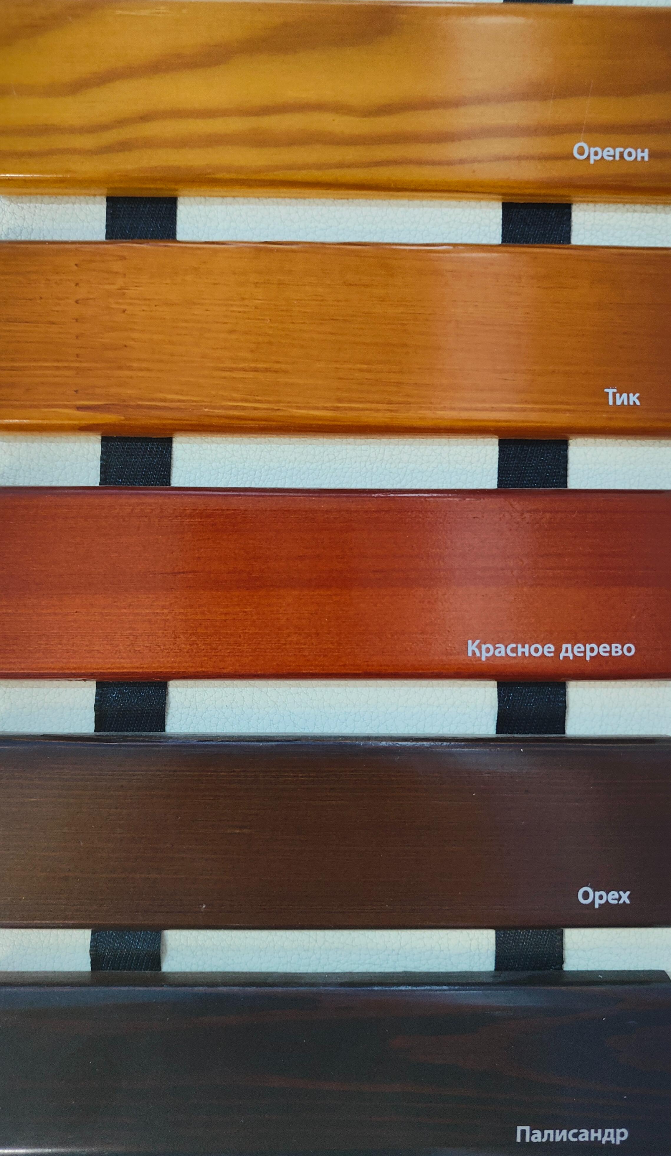 Готовые цвета бесцветный, орех, красное дерево, тик, орегон и палисандр.