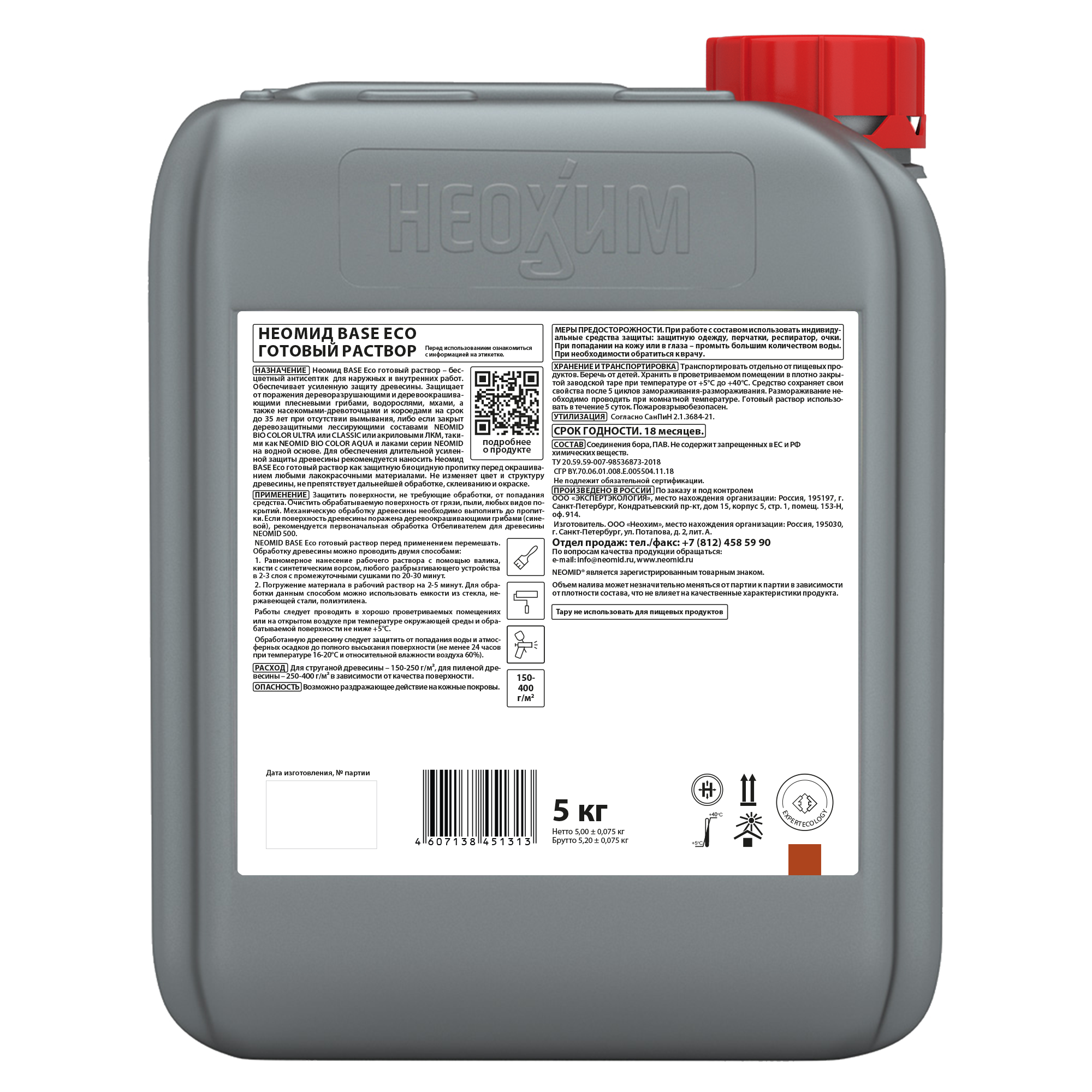 Base Eco деревозащитный состав наруж/внутр - Бесцветный деревозащитный состав для наружных и внутренних работ. Защищает от поражения плесневыми грибами, водорослями, мхами, насекомыми-древоточцами от бренда Neomid с доставкой по России!
