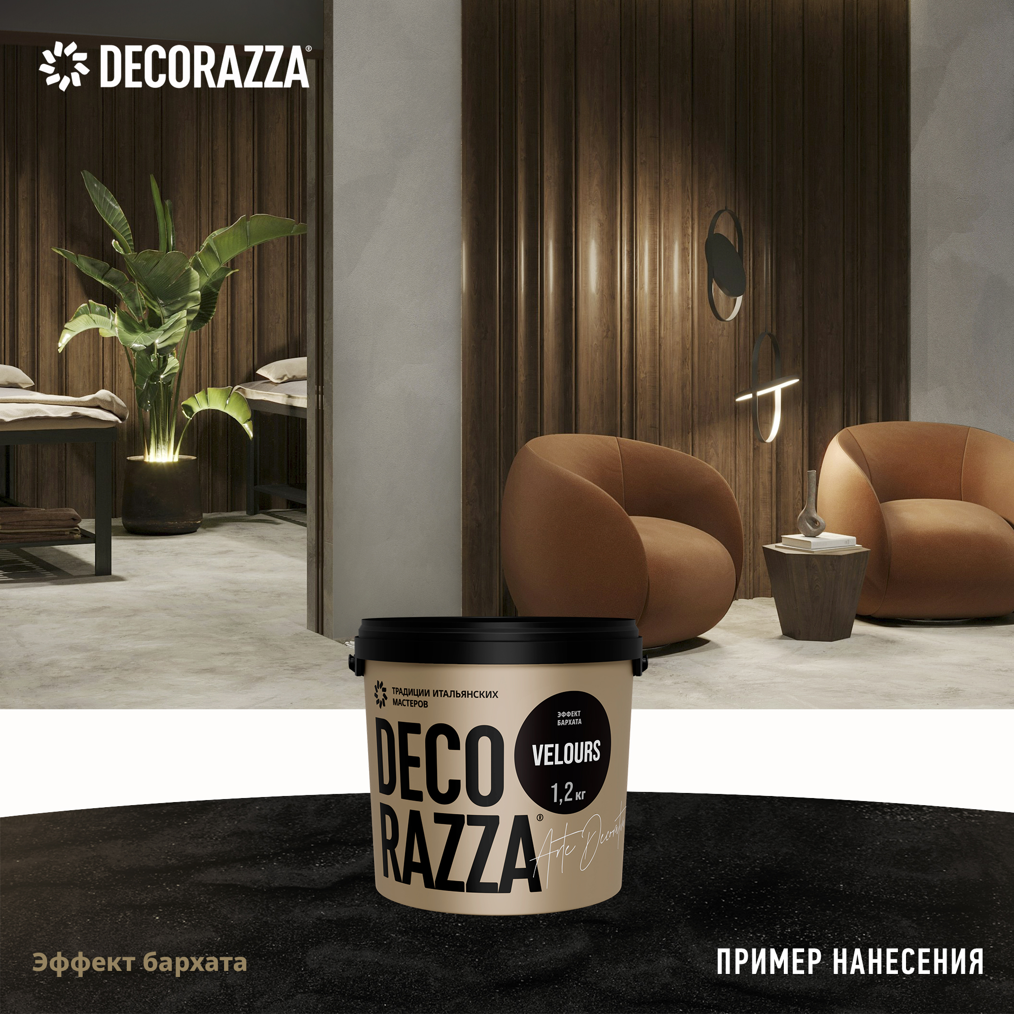 Декоративное покрытие VELOURS - Декоративное покрытие для формирования эффекта гладкой или драпированной бархатной поверхности от бренда Decorazza с доставкой по России!
