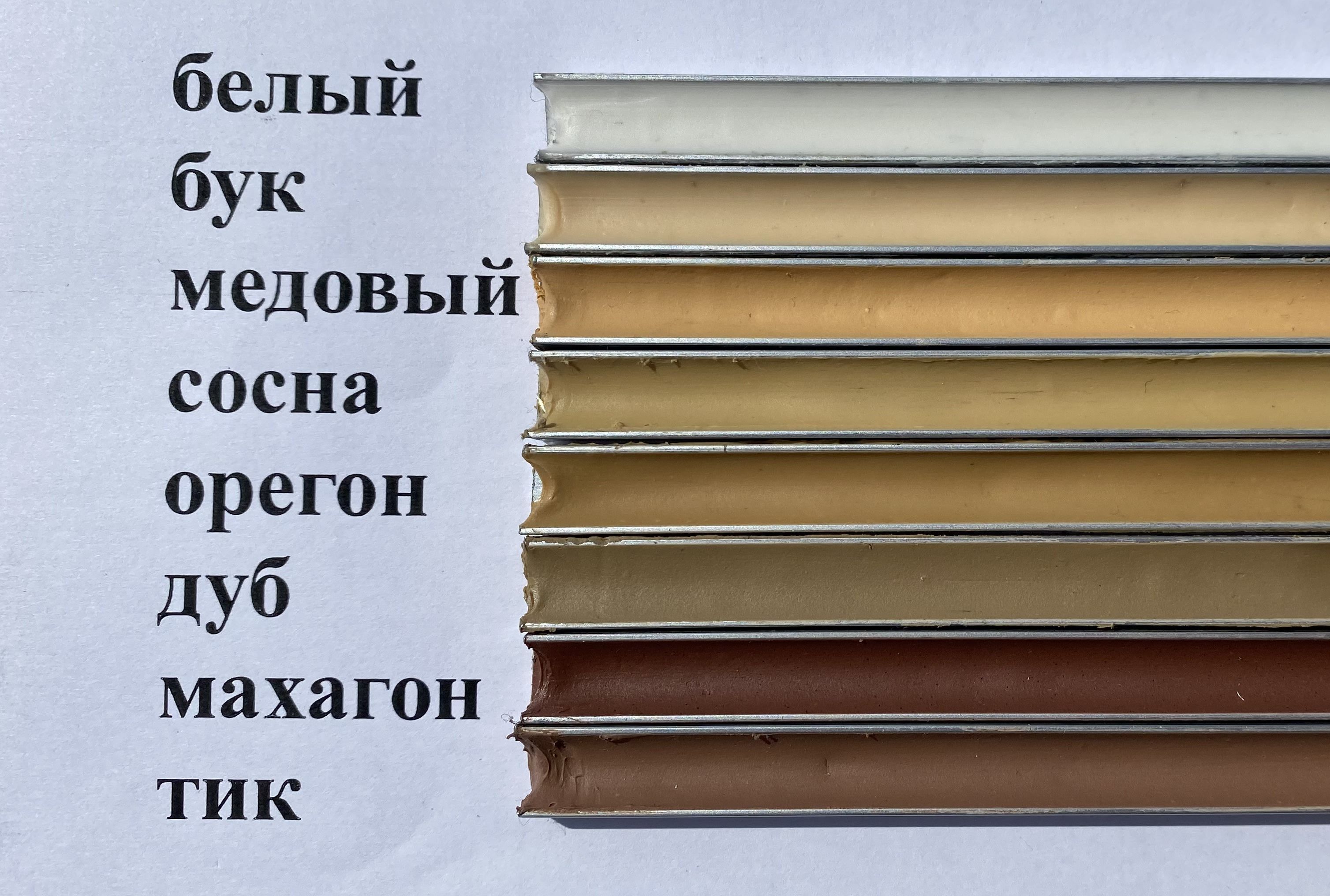 Названия цветов:  Белый; Бук; Дуб; Махагон; Медовый; Орегон; Серый; Сосна; Сосна Золотая; Тик, компьютерная колеровка по согласованию.
