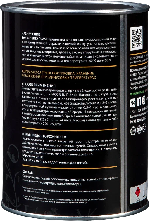 Кузнечная эмаль Церта-Пласт полуглянцевая из наличия или под заказ, с доставкой или самовывозом со склада.