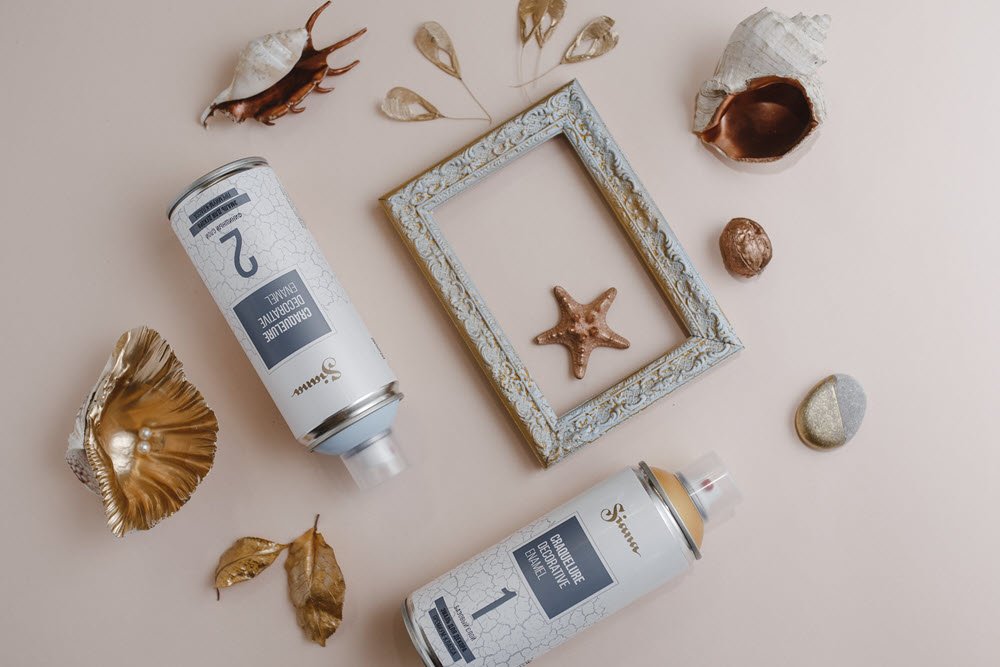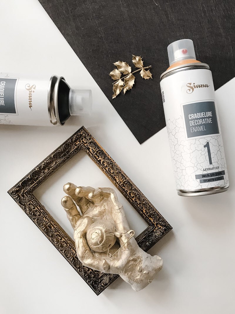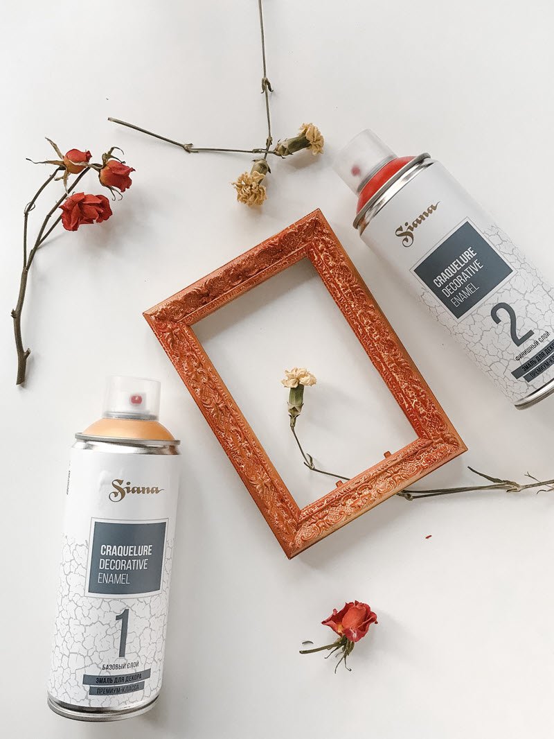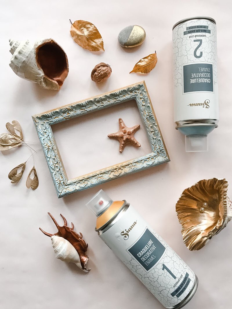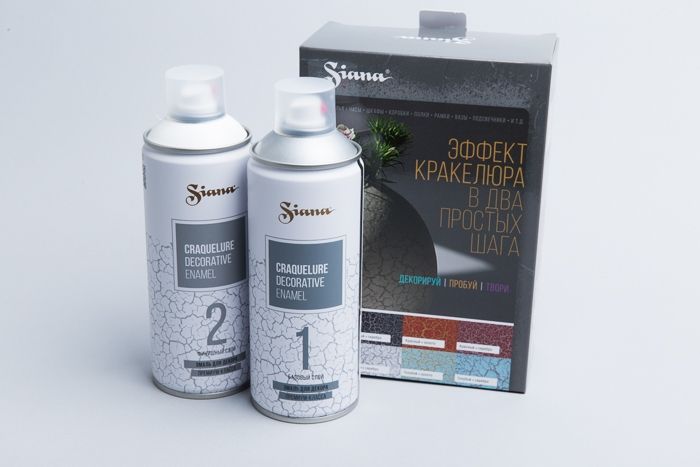 Важно! Трещины образуются только при использовании одновременно двух баллонов Siana Craquelure Base coat (базовый слой) и Siana Craquelure Top coat (финишный слой).