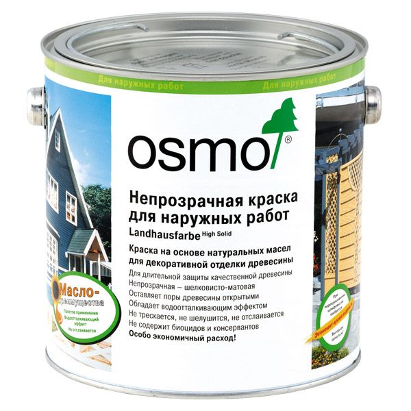 Непрозрачная краска Landhausfarbe  -  Цветная краска на основе натуральных растительных масел для наружных деревянных поверхностей от бренда OSMO с доставкой по России!
