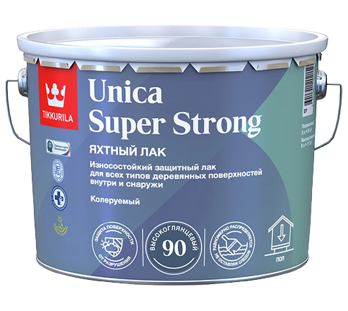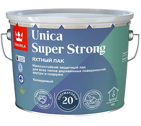 Яхтный лак Unica Super Strong  -  Лак для широкого спектра применений, позволяя защитить и украсить деревянные поверхности в различных условиях. Он идеально подходит для лакировки изделий как внутри, так и снаружи помещений, обеспечивая эффективную защиту от атмосферных воздействий, механических повреждений и химических веществ от бренда Tikkivala с доставкой по России!
